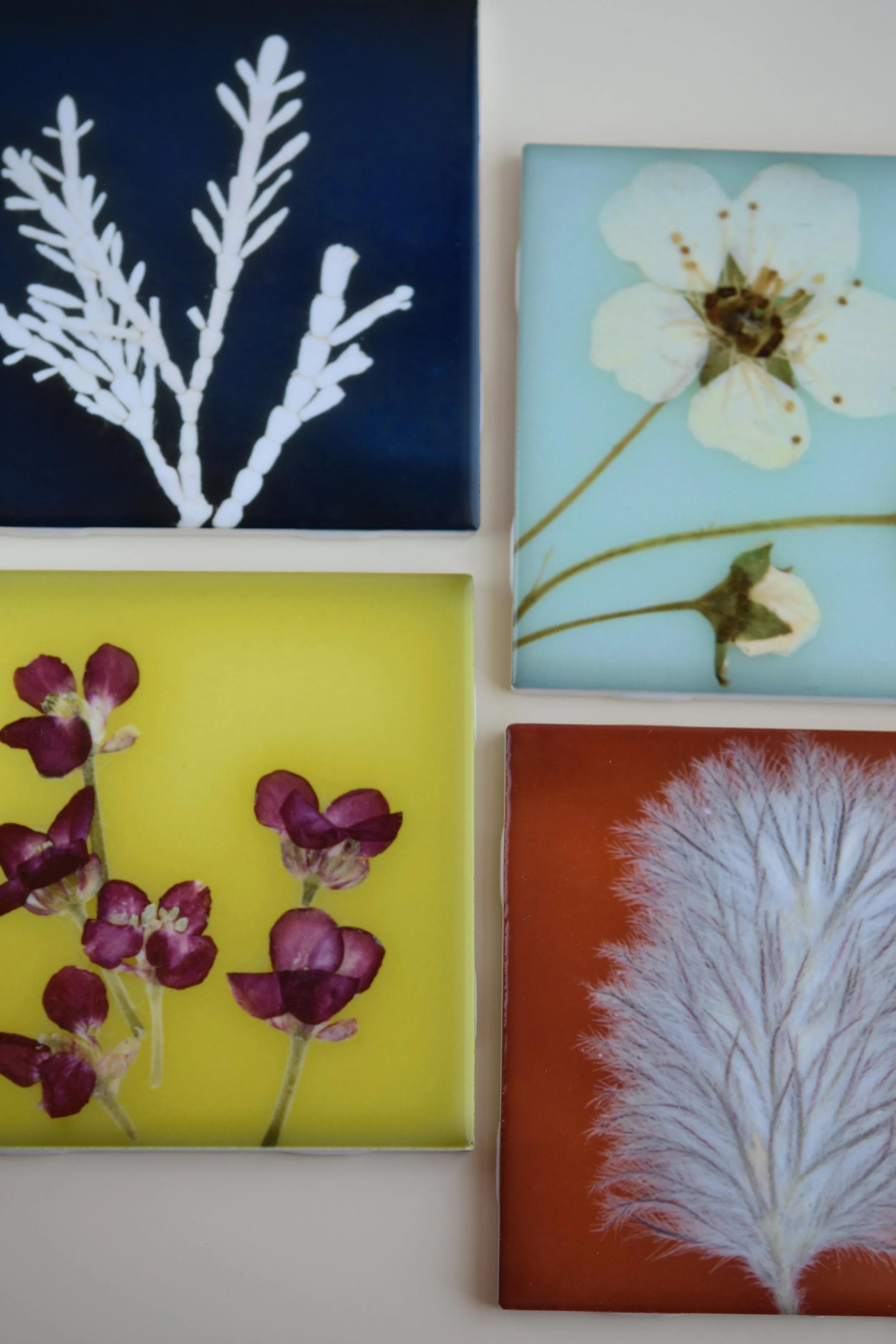 All ceramic tile - green with elderflowers from $30.00 ceramic botanical tile - pink begonia on orange from $30.00 ceramic botanical tile - lime with fern stem from $30.00 ceramic botanical tile - tulum blue with cherry blossoms from $30.00 ceramic botanical tile - mediteranean blue with hydrangea flowers from $30.00 ceramic botanical tile - leaf on green from $30.00 Copy of set of 4 (4.25" X 4.25") ceramic tiles. $120.00 ceramic botanical tile - navy blue with corraline algae from $30.00 Ceramic botanical tile - seafoam with pressed brown algae (seaweed) $30.00 ceramic botanical tile - yellow with pink sweet alyssum $30.00 ceramic tile - green with wild grass from $30.00 ceramic botanical tile - lime yellow with cherry blossoms from $30.00 ceramic botanical tile - mock orange on orange from $30.00 ceramic botanical tile - pale blue with aster from $30.00 ceramic botanical tile - ice blue with red algea $30.00 ceramic botanical tile - seafoam with spirea $30.00 ceramic botanical tile - ice blue with single red algea $30.00 ceramic botanical tile - yellow with brown algae (seaweed) $30.00 ceramic botanical tile - 4 onions on blue from $30.00 ceramic botanical tile - orange with rabbit's foot clover $30.00 ceramic botanical tile - burgandy flower on orange from $30.00 ceramic botanical tile - wild rose on black from $30.00 ceramic botanical tile - hydrangea flowers on green from $30.00 ceramic botanical tile - sunny yellow with fern stems from $30.00 ceramic botanical tile - tulum blue with fern stems from $30.00 ceramic tile - orange w/ vertical purple sweet alyssum from $30.00 ceramic tile - teal w/ leaf from $30.00 ceramic botanical tile - white with fern stems from $30.00 ceramic botanical tile - Rue on forest green from $30.00 orange w/ aster from $30.00 white w/ stems from $30.00 ceramic tile - navy blue w/ sorel sprig from $30.00 ceramic tile - green w/ wedding flower from $30.00